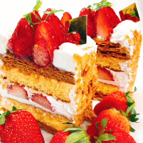 キュルミネ自慢のパイ、アンベルセを使ってショートケーキとミルフィーユが合体した様なスイーツです。
