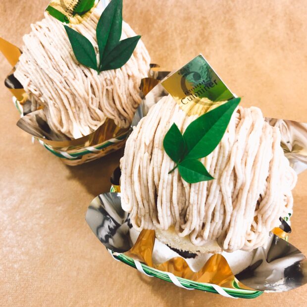 和栗クリームと糖度下げた生クリームセンターにフランス産の栗でマロンシャンティーでリッチなモンブランを作りました。